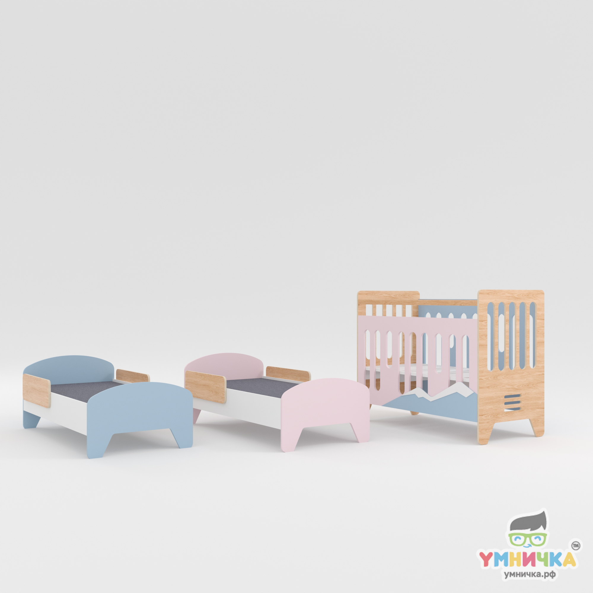 Кровать детская 140×60 с бортиками из коллекции «Яслиград», голубая