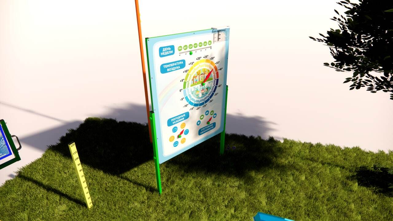 Метеоуголок «Юный натуралист» – это авторская разработка компании, созданная для проведения тематических занятий на улице с детьми дошкольного возраста. Уголок включает 8 развивающих модулей для знакомства с окружающей средой и изучения природных явлений. Дети смогут изучать направление ветра, знакомиться с видами облаков и временами года, замерять высоту снежного покрова и т. п.